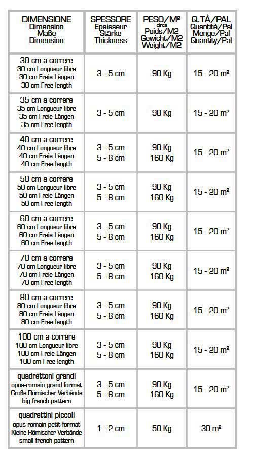 | Dimensioni TERRA di Trento Sabbiato Impregnato | Kg / mq |