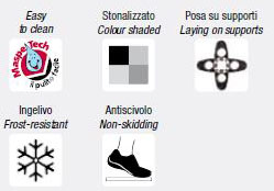 | Dimensioni cm. | Piano calpestio | Coste | Materiale | Kg / mq |